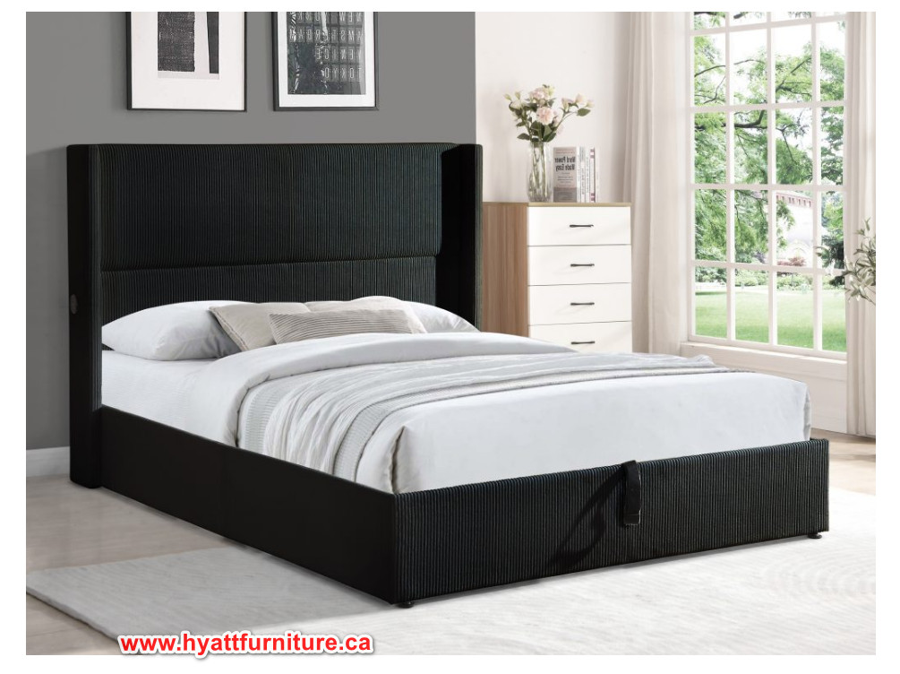 Elegant Velvet Corduroy Double size Storage Platform Bed