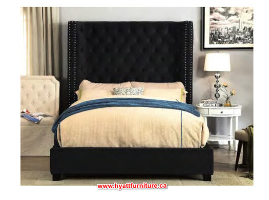 Elegant Velvet Fabric Queen size Platform Bed 5/0