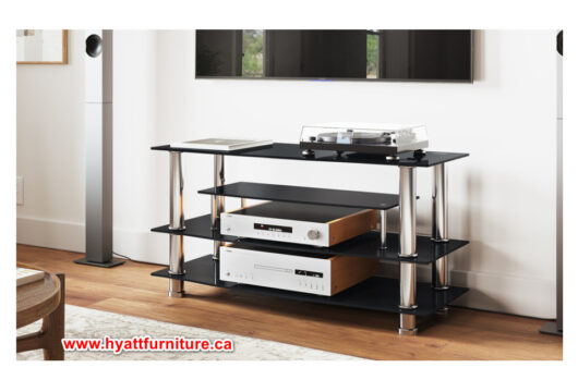 Black Glass TV Stand w/ Chrome Frame