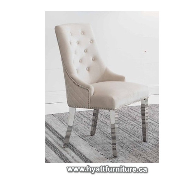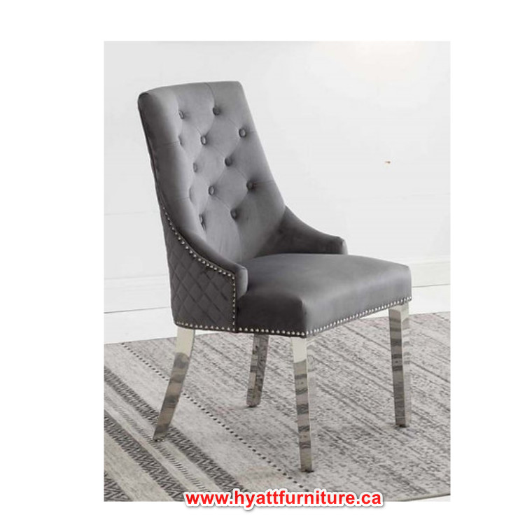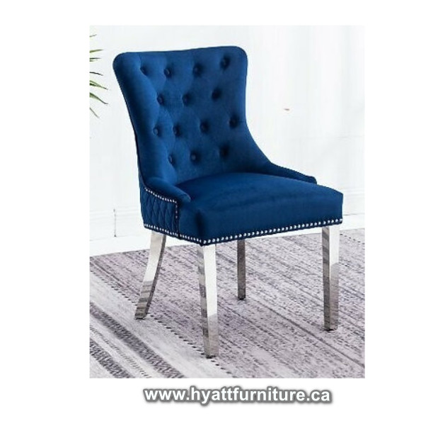 Chairs: Black Velvet Dining Chair with Lion Knocker, Polished Chrome Frame, Diamond Studded back and Nail Head Details.