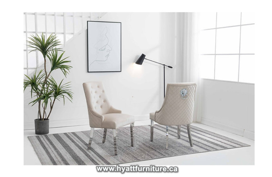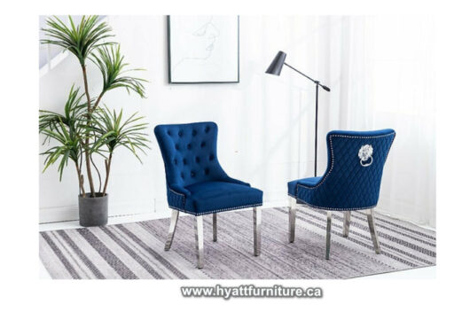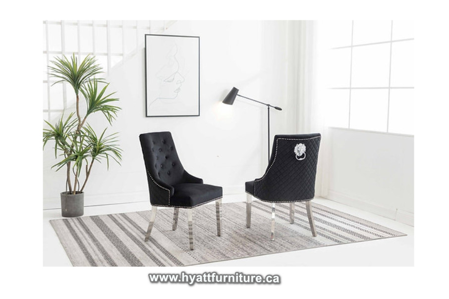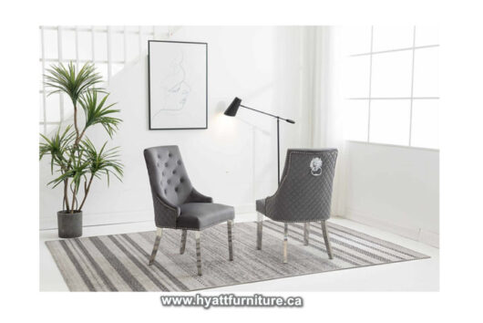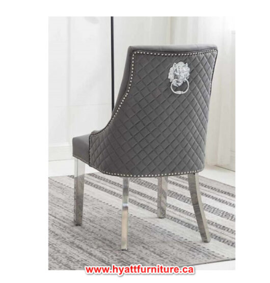 Chairs: Velvet with Lion Knocker, Polished Chrome Frame,