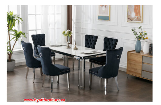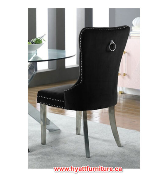 Chairs: Velvet with Deep Tufting, Chrome Knocker, Polished Chrome Legs,