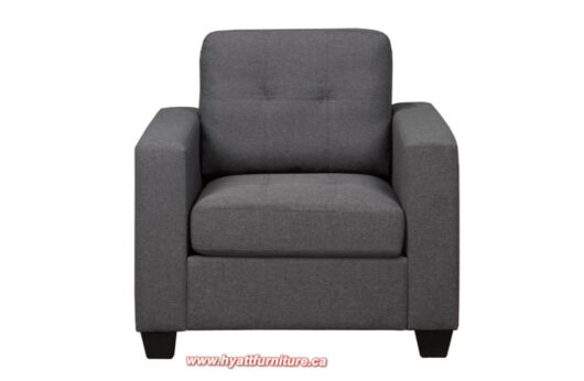 Features button tufting and Wooden legs