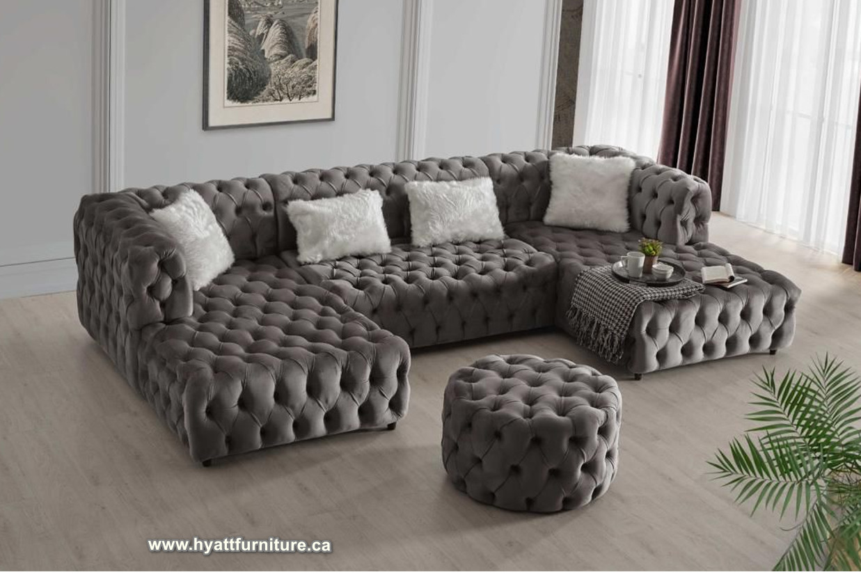 Designed Deep Tufted Velvet Fabric “U” Shape Sectional Sofa
