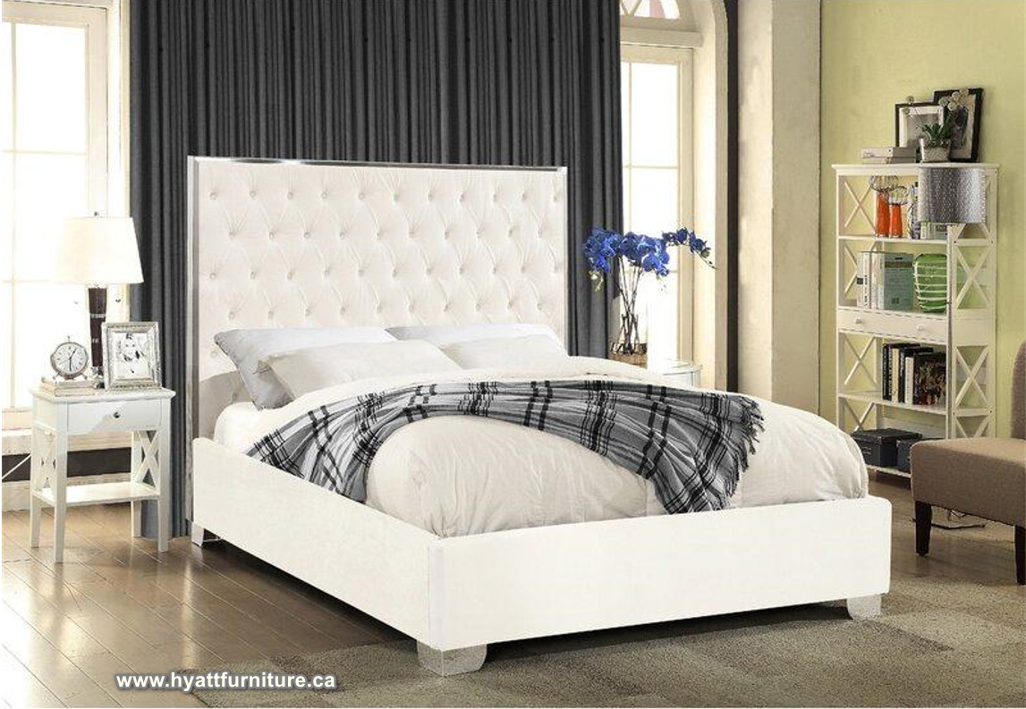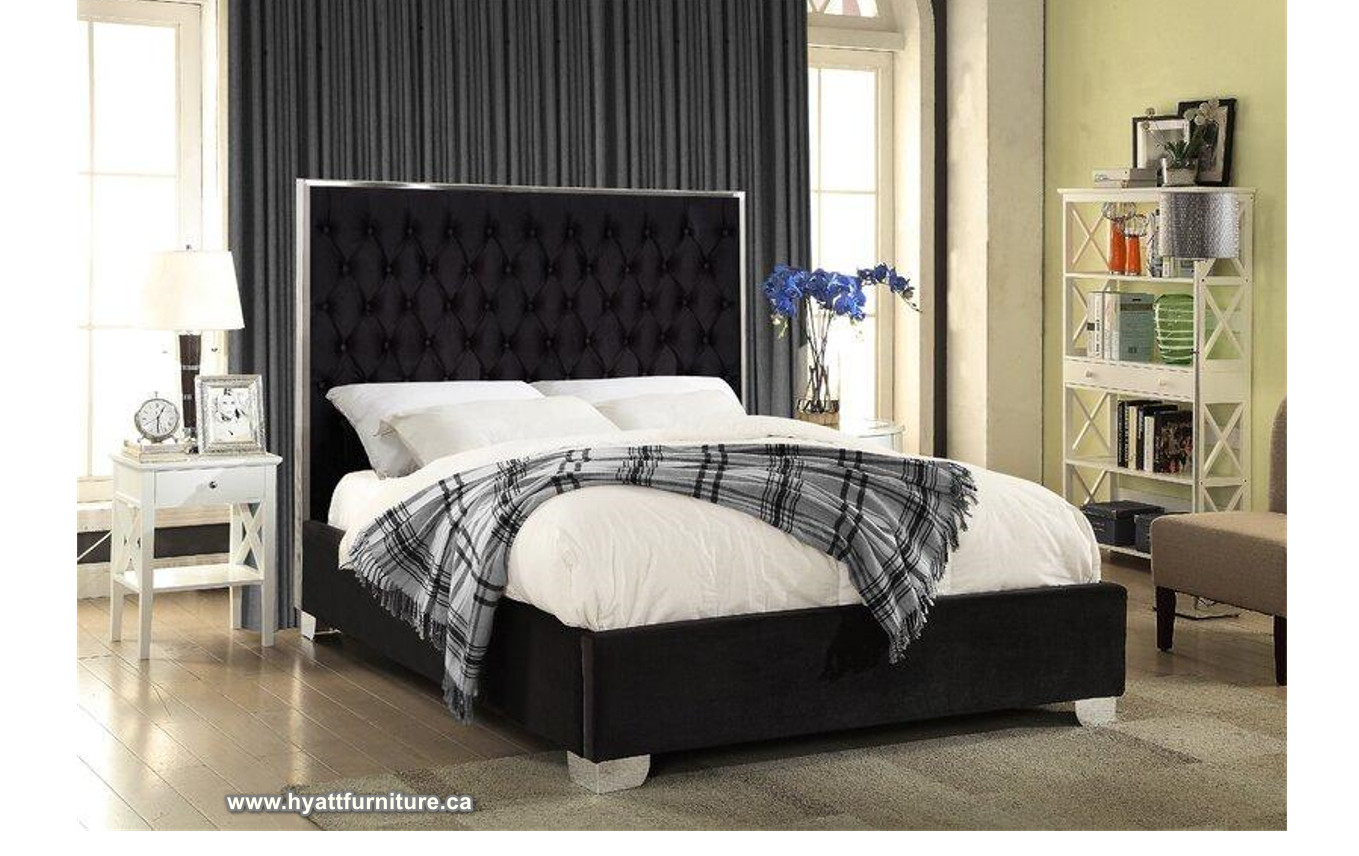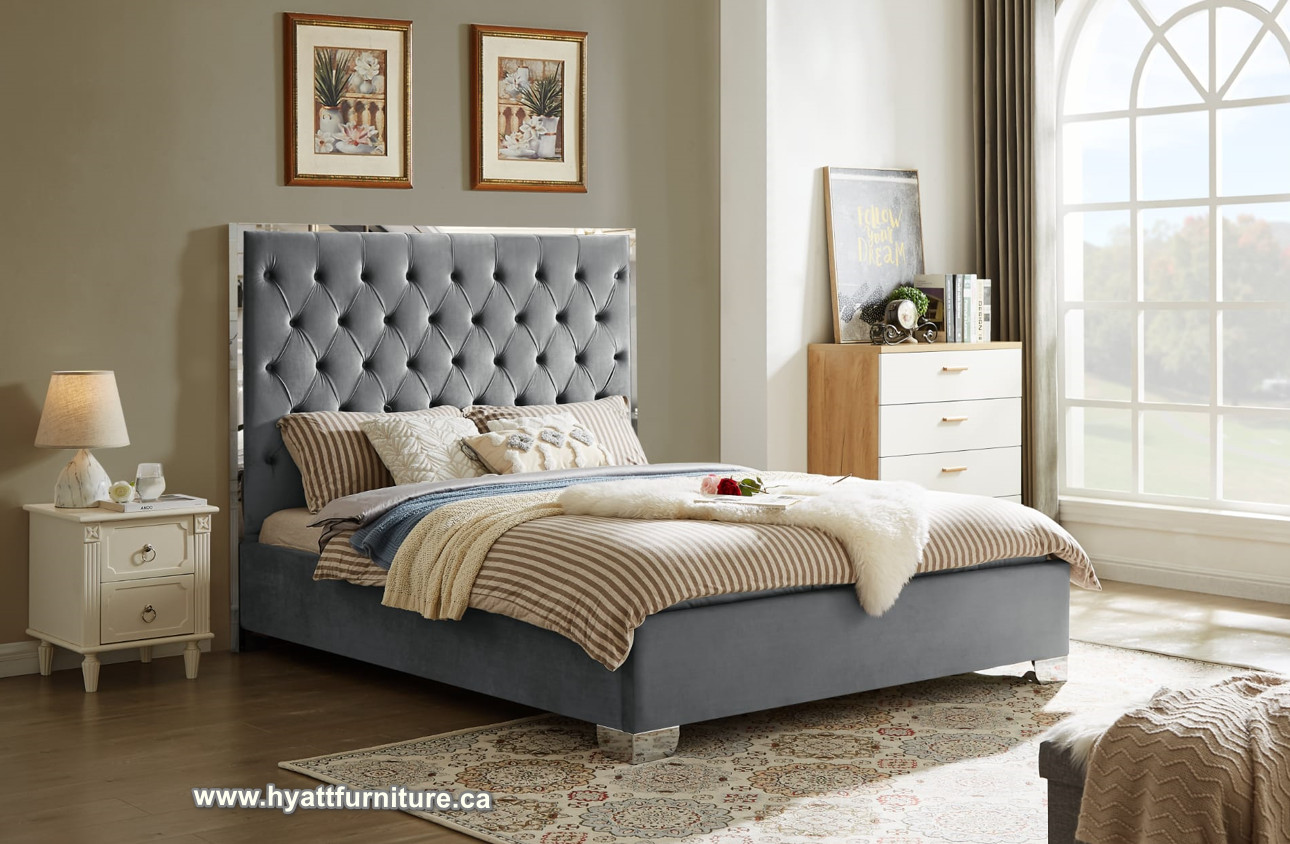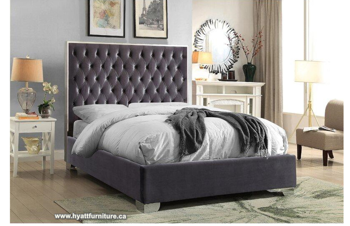 Velvet Bed Tufted with Designed Chrome Frame