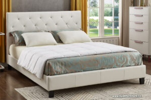 The perfect blend of comfort and style. Built to last, this bed includes button tufting with diamond stitching, sturdy construction, and a contemporary design sure to impress.