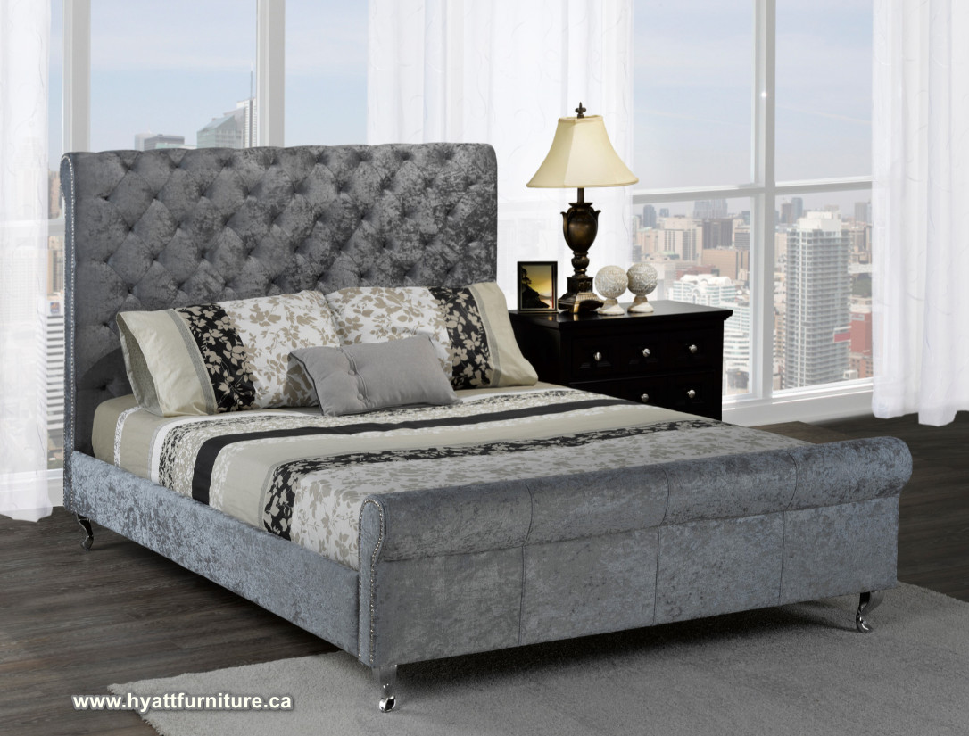 Elegant style Chenille Fabric Double size Platform Bed