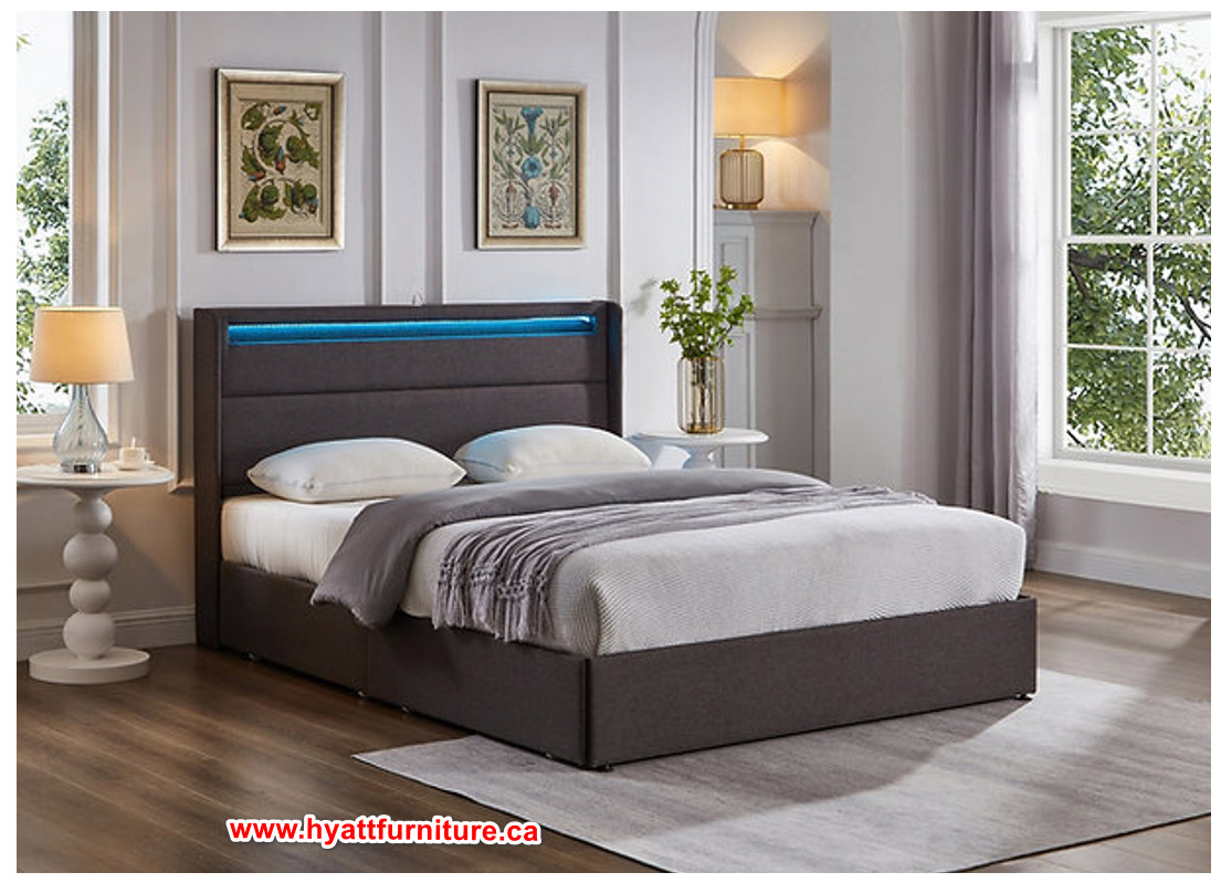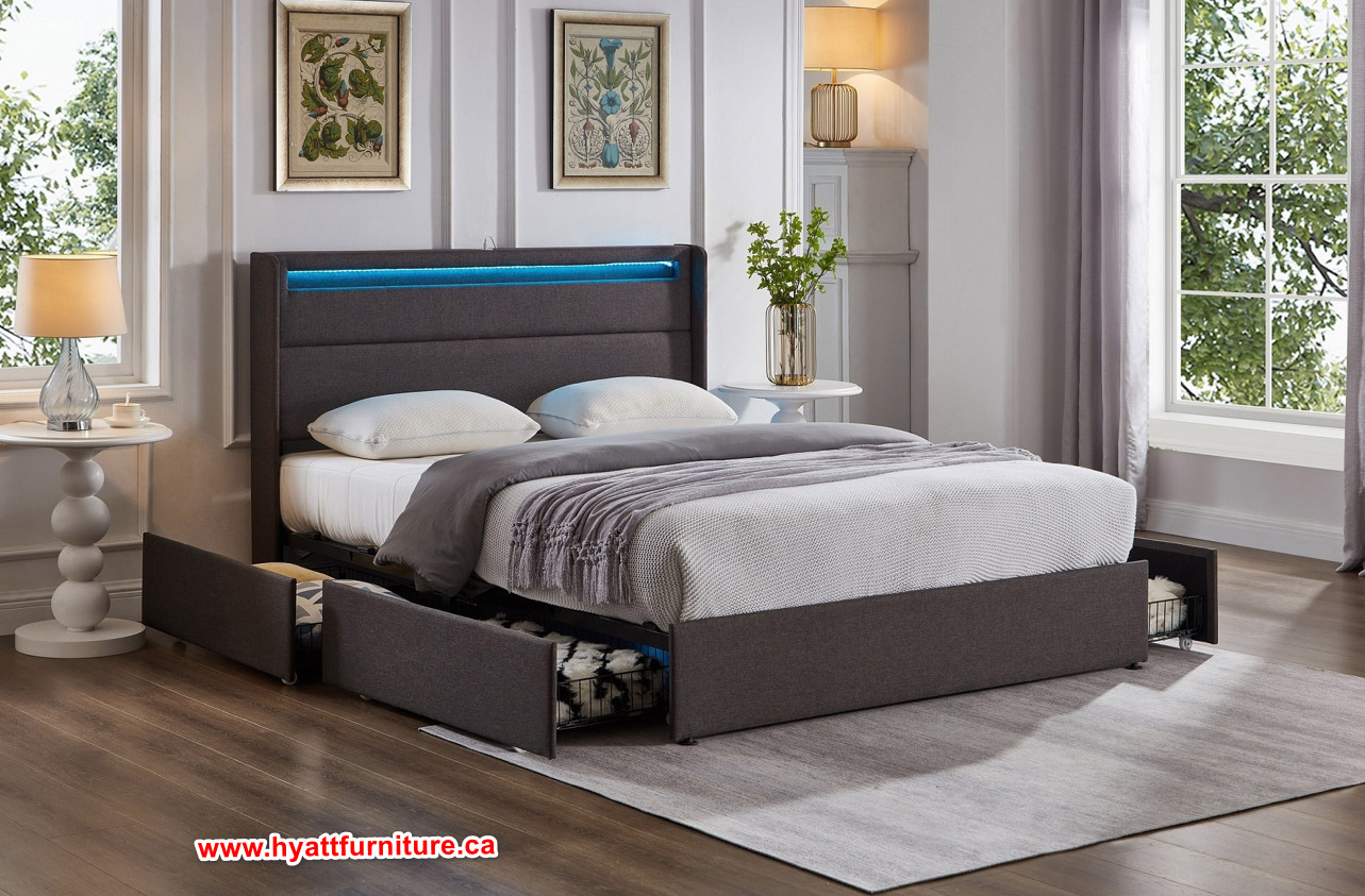 Grey Fabric  Double size Storage Platform Bed