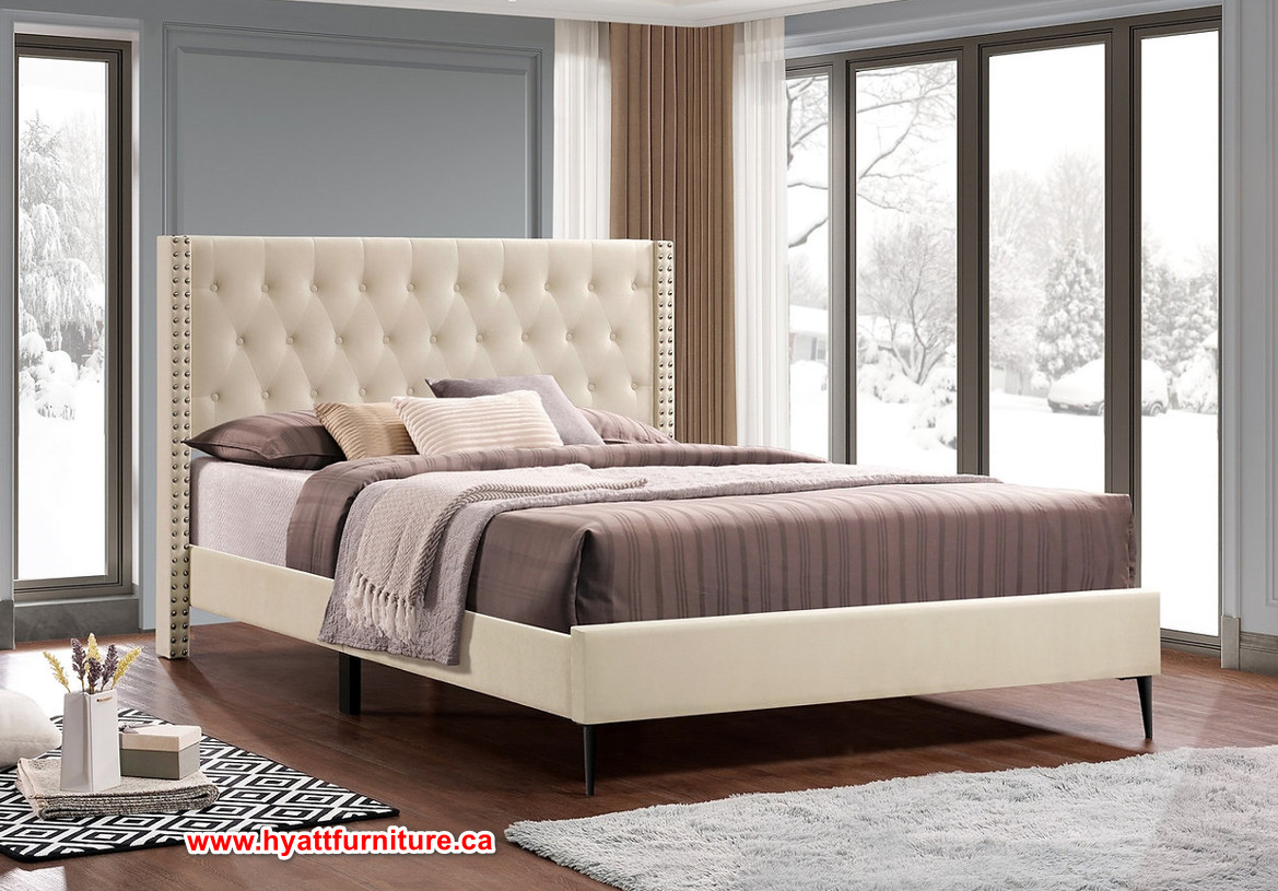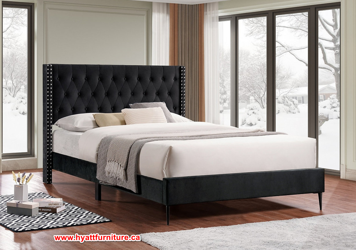Elegant Velvet Fabric Double size Platform Bed 4/6