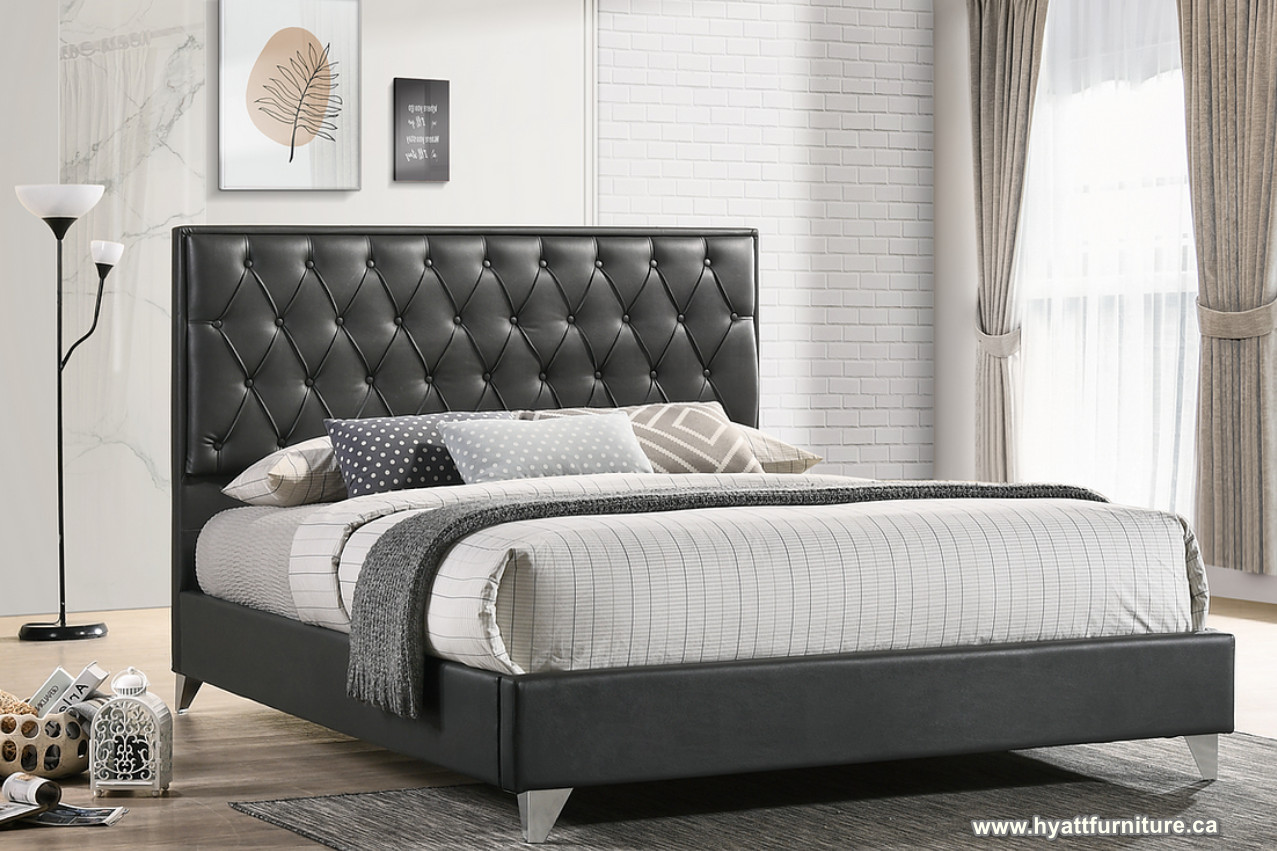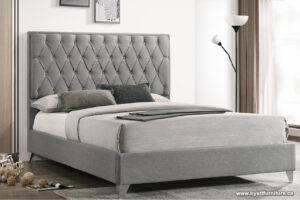 Grey PU Bed With Diamond Pattern Button Details and Chrome Legs