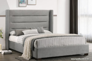 Grey PU Bed with Horizontal Deep Tufted Panels and Chrome Legs
