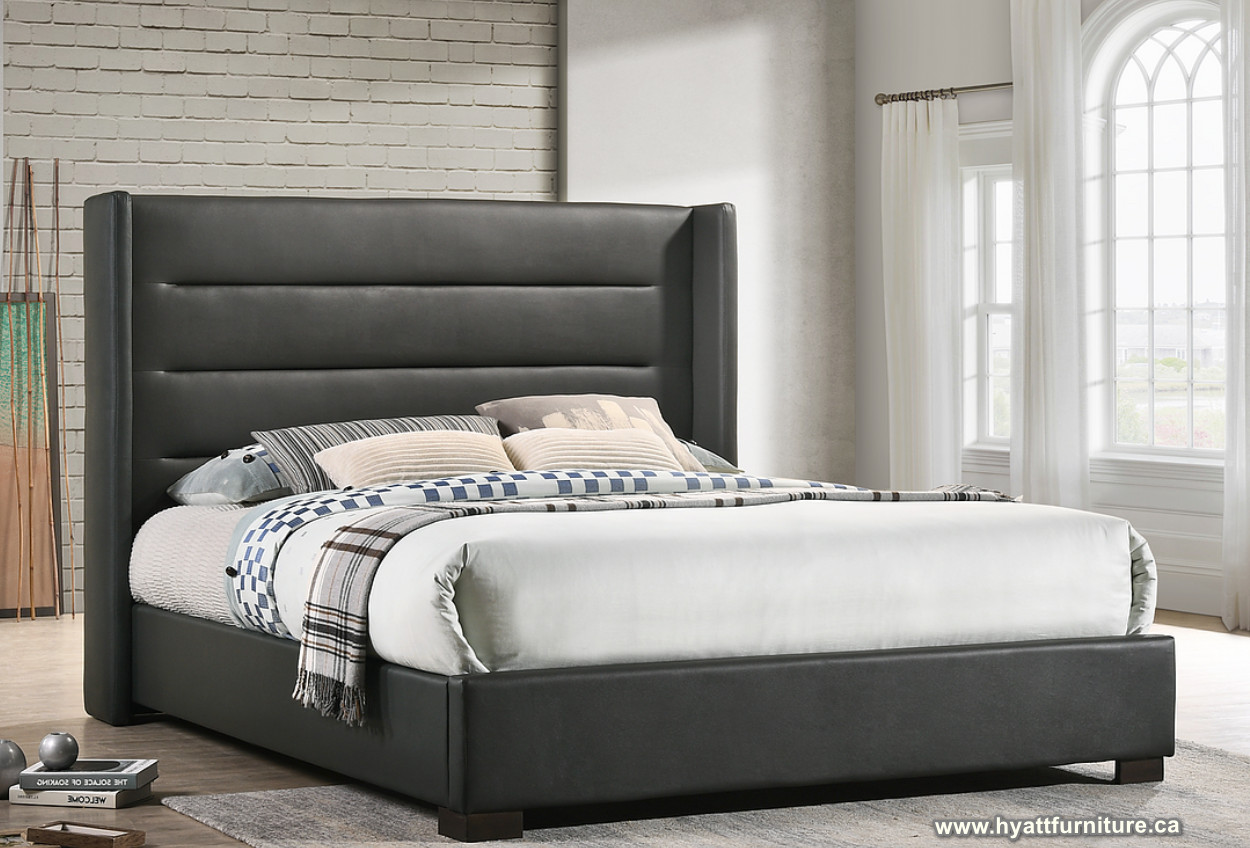 Elegant  Grey Synthetic Leather Queen size Platform Bed