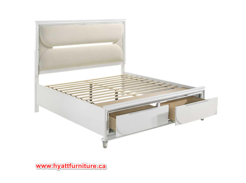 The set combines contemporary design with practical storage solutions, highlighted by the boucle fabric headboard and storage footboard.Experience the ultimate in stylish functionality with the Rachel Bedroom Set, ideal for creating a serene and sophisticated retreat in your home.
