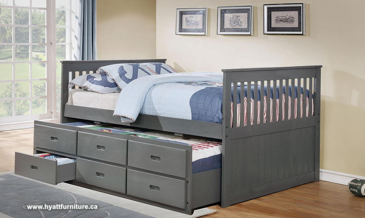 This multi-purpose, 39″ Captain’s Daybed is a great space saving solution with both storage and a trundle. The solid wood frame offers a sturdy sleeping space, while the side drawer pulls out to reveal both a trundle for an additional mattress, and 3 deep drawers.