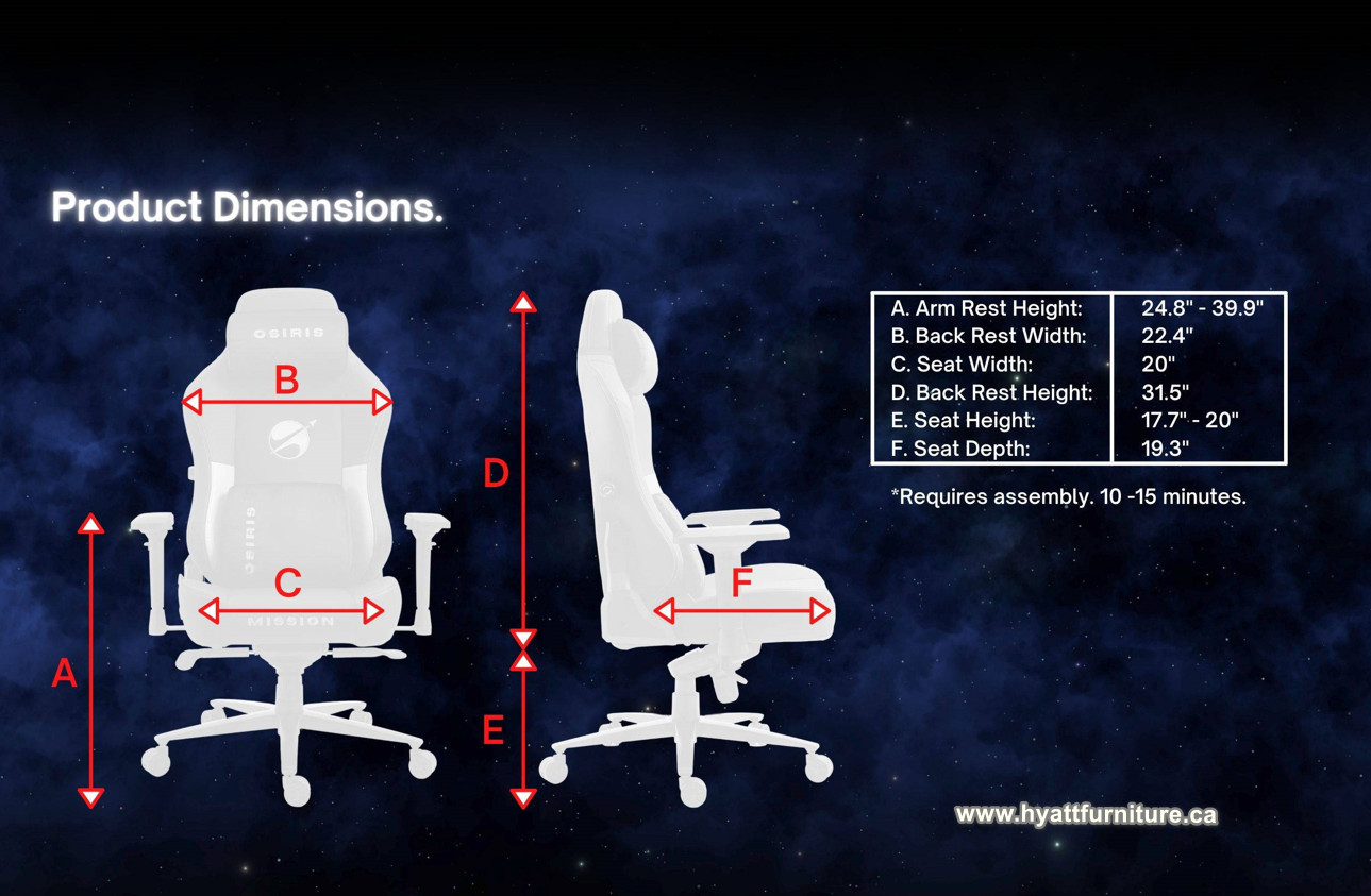 - Seat Pan Height (with base): 18.3″ – 21.5″