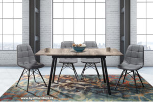 - Metal legs with a shiny chrome finish