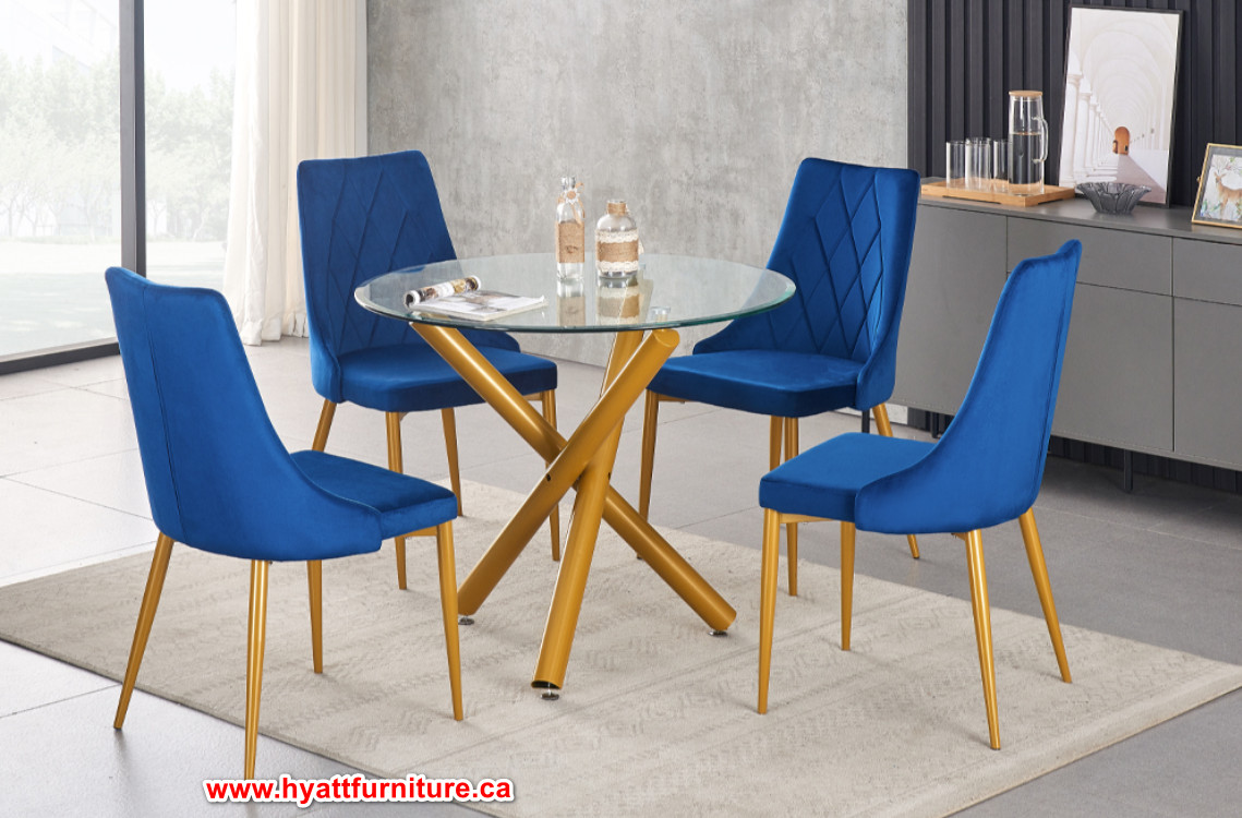 Chairs: Blue Velvet Dining Chair w/ Golden Legs