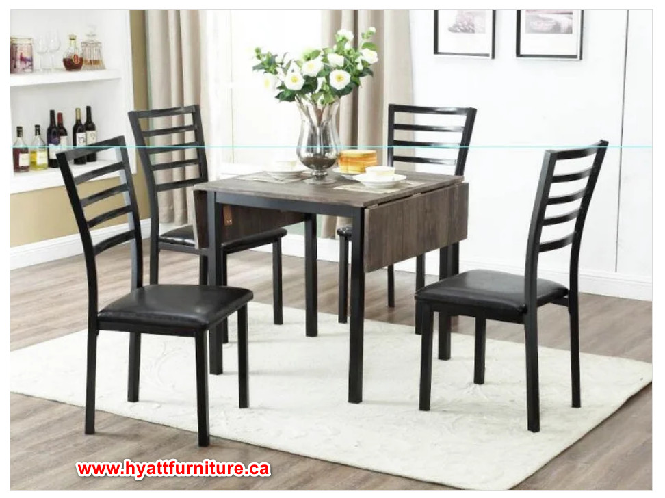 Distressed Wooden Table With 2 x 9”Drop Leaves and Metal Base