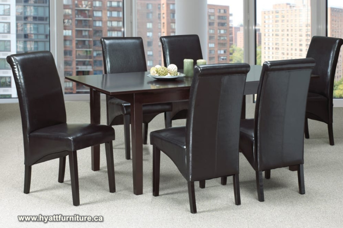 Elegant leatherette chairs accent this beautiful dining set to add a touch of contemporary flare to any dining décor.