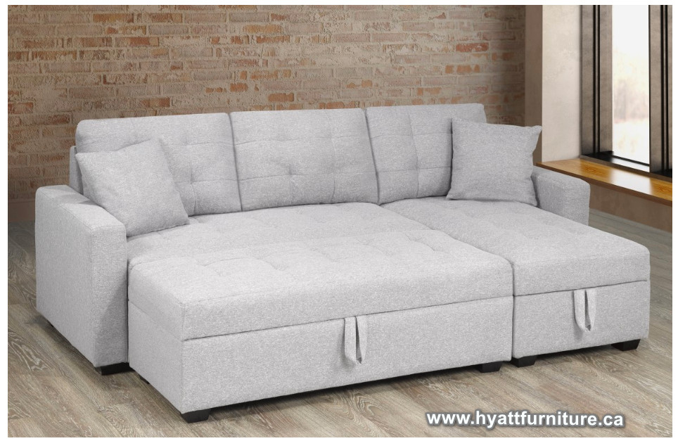 Create a functional seating and sleeping area in your home with this chic sectional sofa. Its neutral light grey finish effortlessly complements a wide range of contemporary interiors. This inviting sectional sofa is crafted with ultra-comfortable seating and easily converts into a convenient bed to accommodate overnight guests as needed. A fashionable matching ottoman with hidden storage space lets you tuck blankets, remotes and other items neatly out of sight for a clutter-free look.