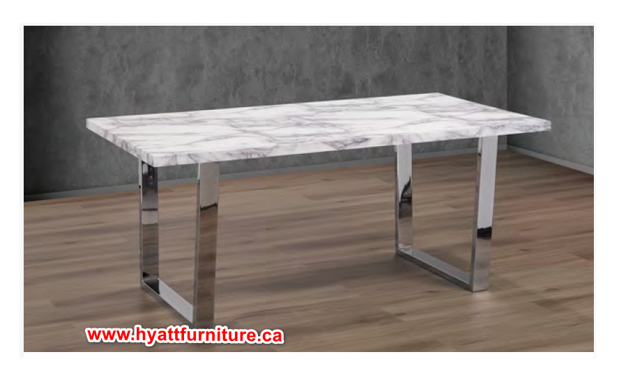 Make an impact in the dining room with this impressive, eye catching dining set. The 2″ thick, white veneer table top contrasts perfectly with the thick, chrome finish metal legs to create a look you will love to entertain on for years to come.