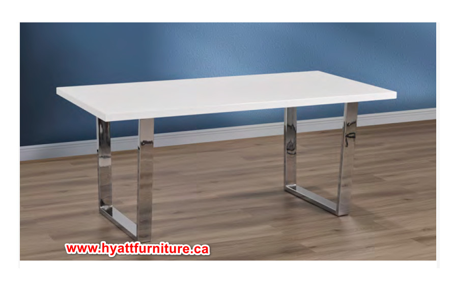 Make an impact in the dining room with this impressive, eye catching dining set. The 2″ thick, white veneer table top contrasts perfectly with the thick, chrome finish metal legs to create a look you will love to entertain on for years to come.